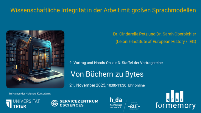 NFDI4Memory integriert erstmals historische Forschungs-, Gedächtnis- und Informationseinrichtungen in einer digitalen Forschungsdateninfrastruktur. Mitarbeitende aus dem institutionsübergreifenden Netzwerk ermöglichen durch die Entwicklung innovativer Methoden und Services die nachhaltige Transformation der historisch arbeitenden Geisteswissenschaften.